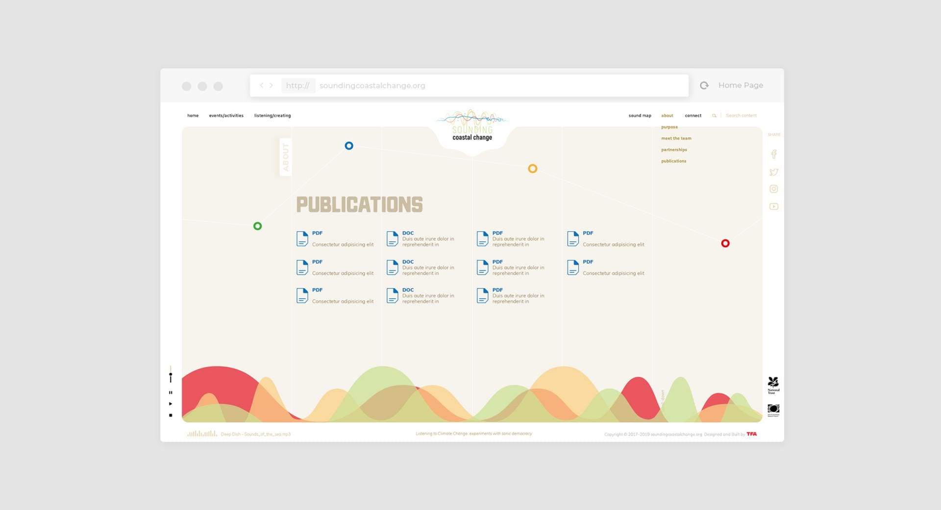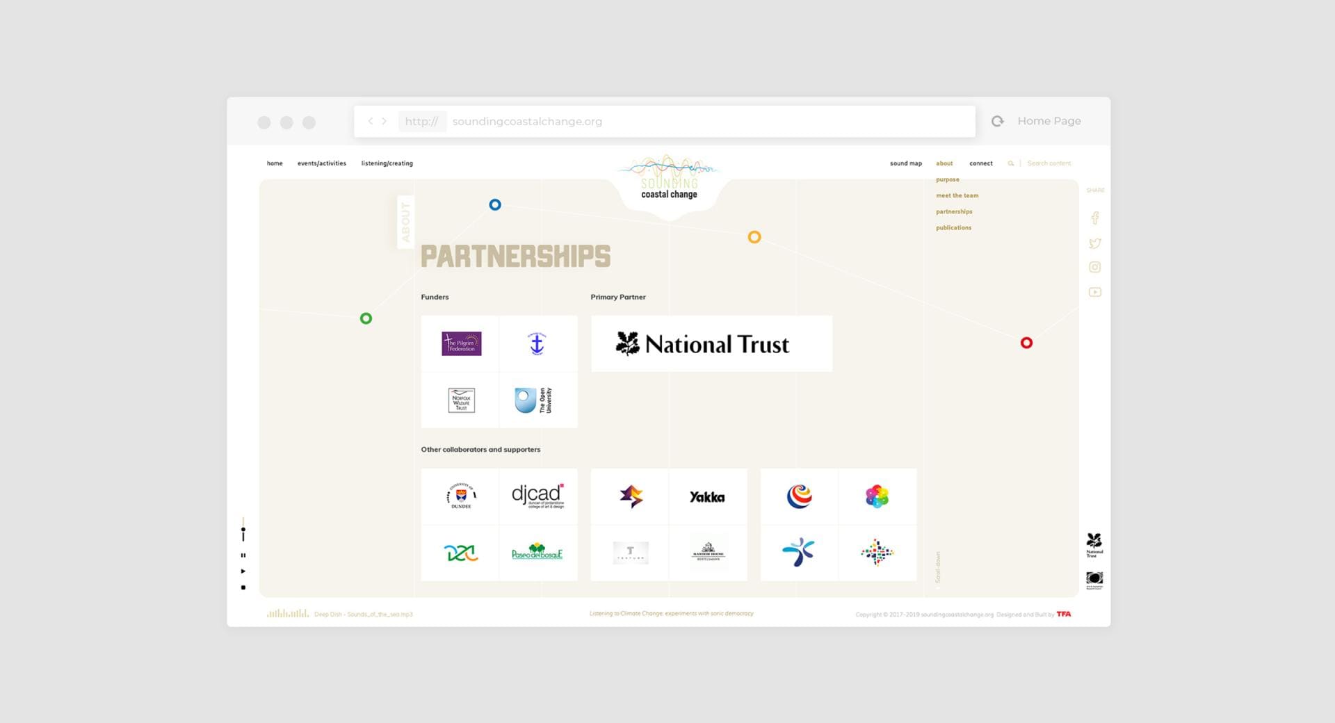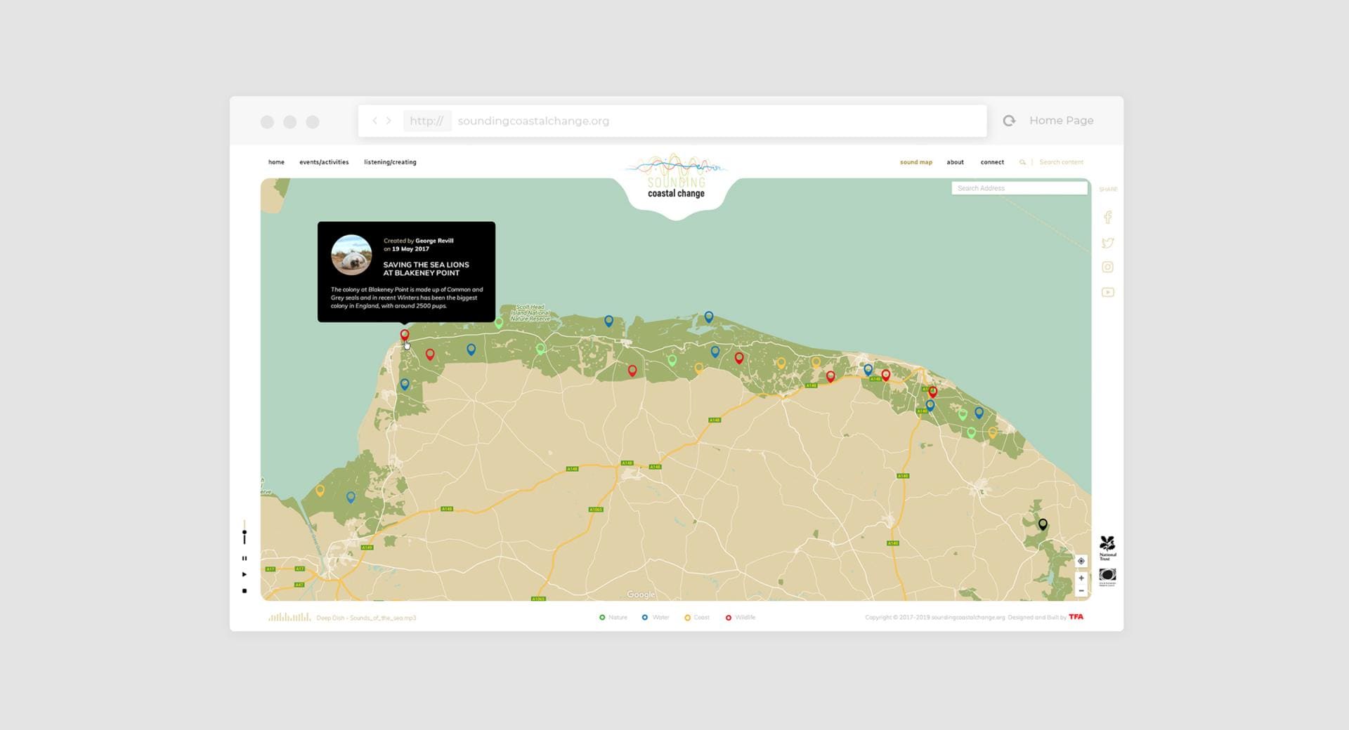 The project is very strongly rooted in the coastline of Norfolk in the UK. The coast is always changing so this has been chosen to be symbolic and representative of problems faced throughout society and using art to give voice to serious and political issues. Our branding development began with that as a starting point and evolved into the strong colourful logo you can see above, followed be design of the website and website development.