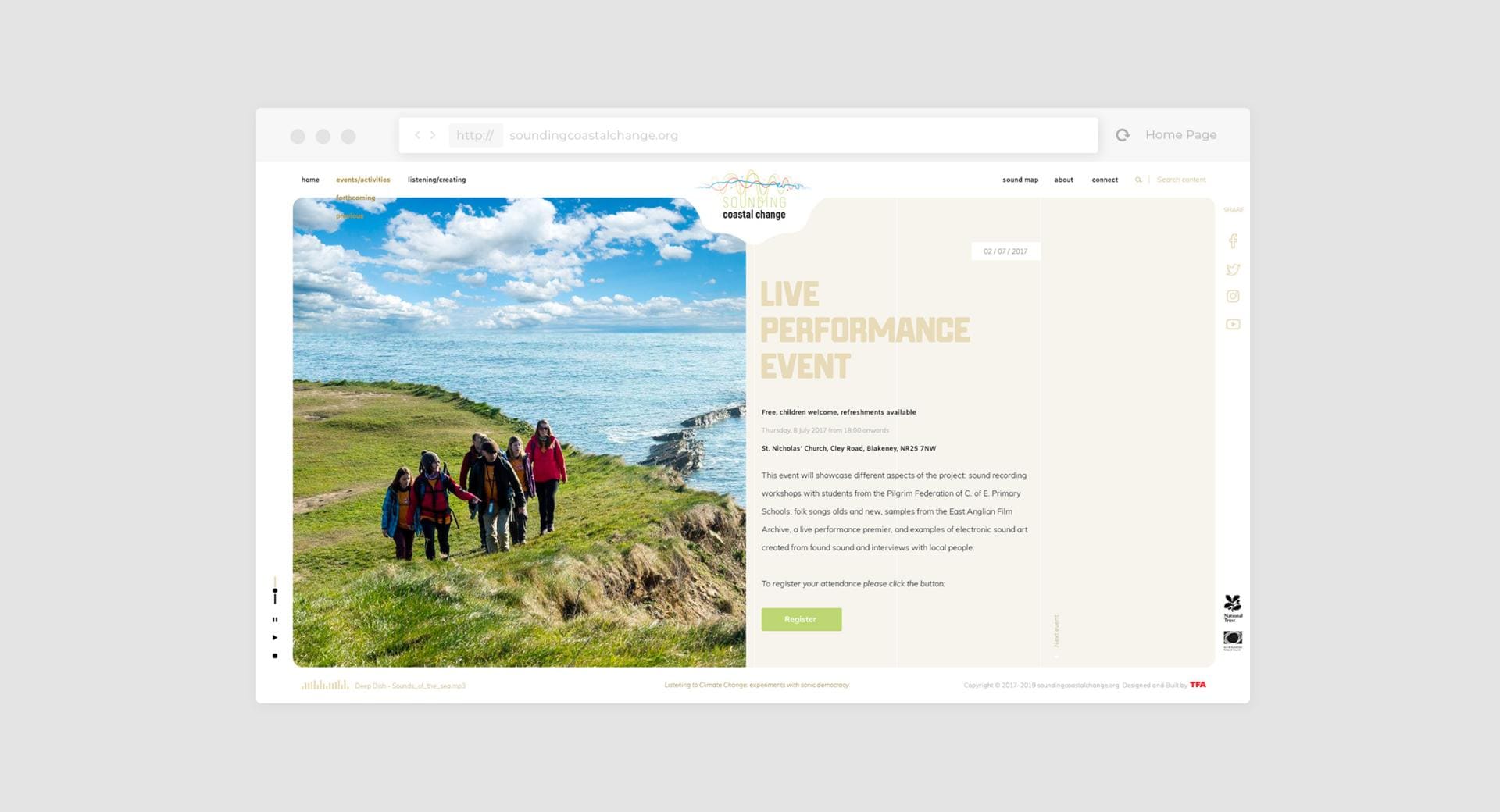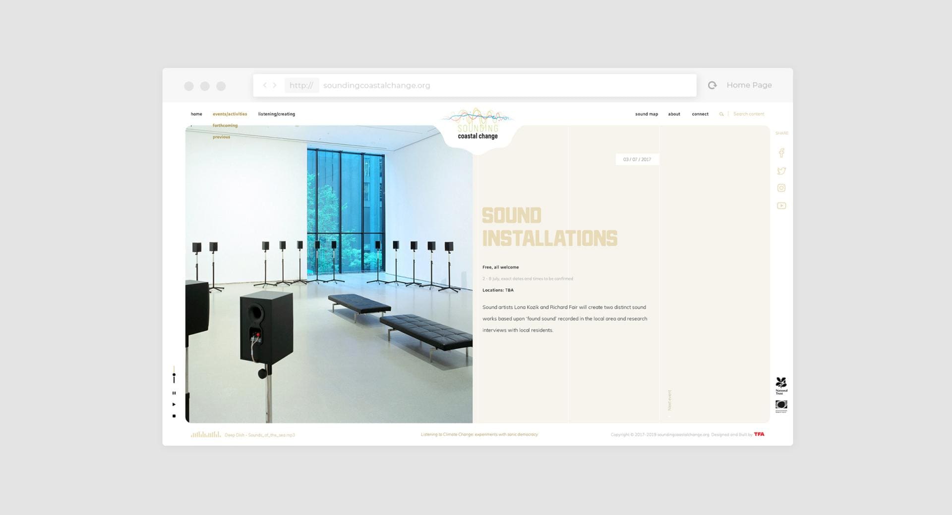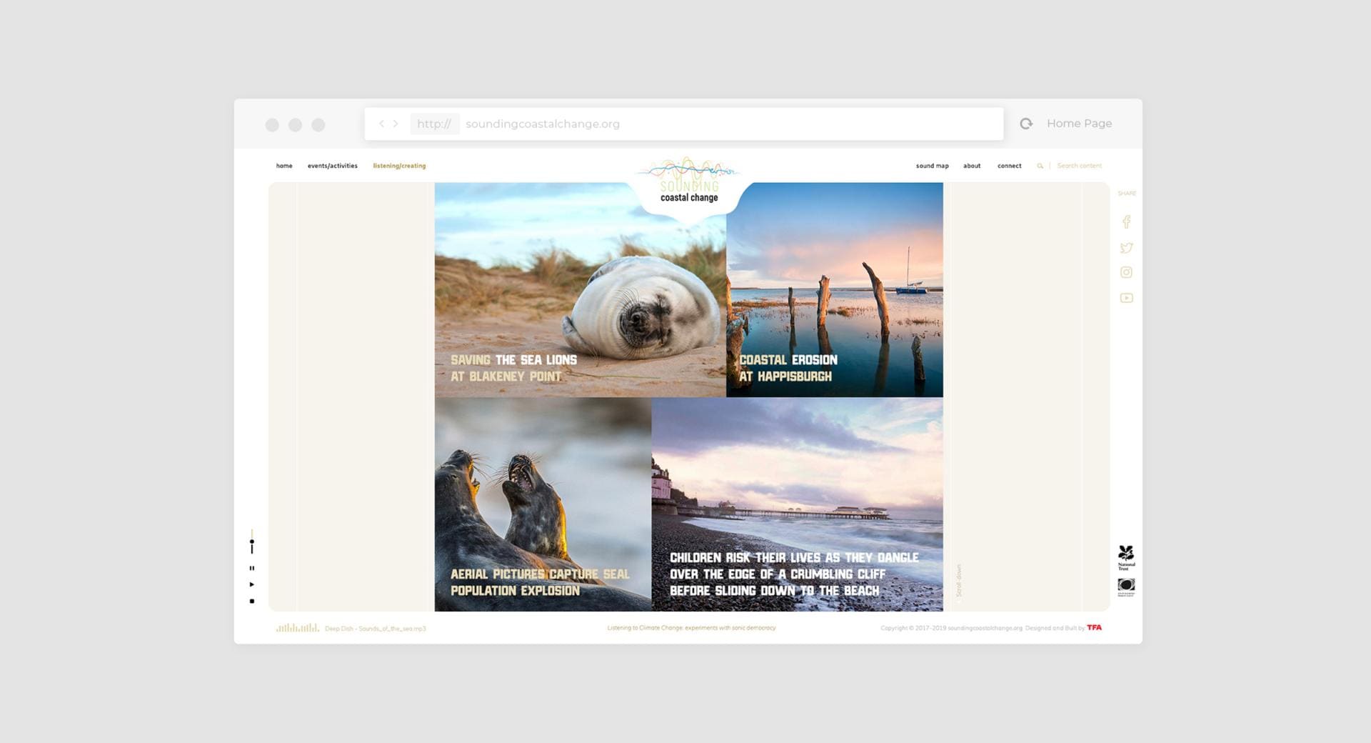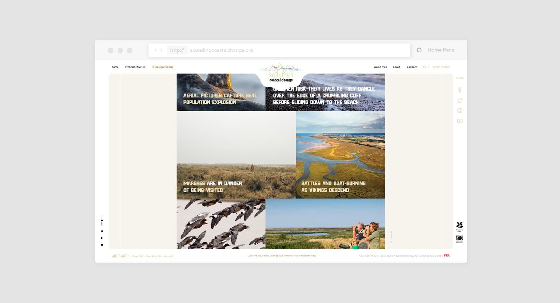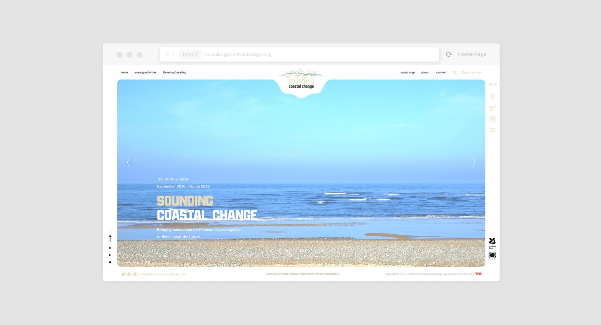 Sounding Coastal Change is an "Arts and Climate Change" project, defined as "Social Process Art" using primarily sound to highlight and engage people around the issues of climate change.
