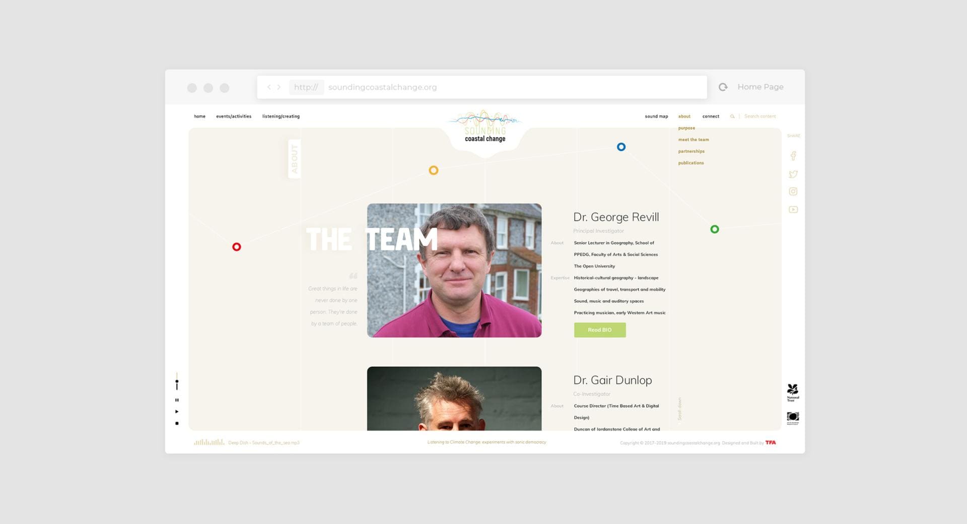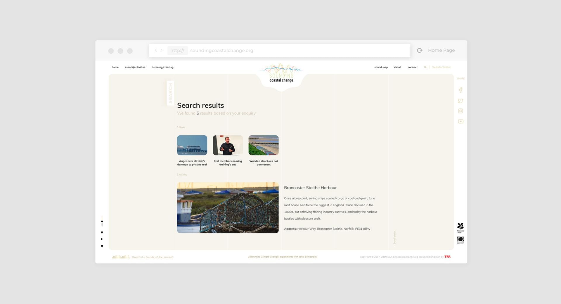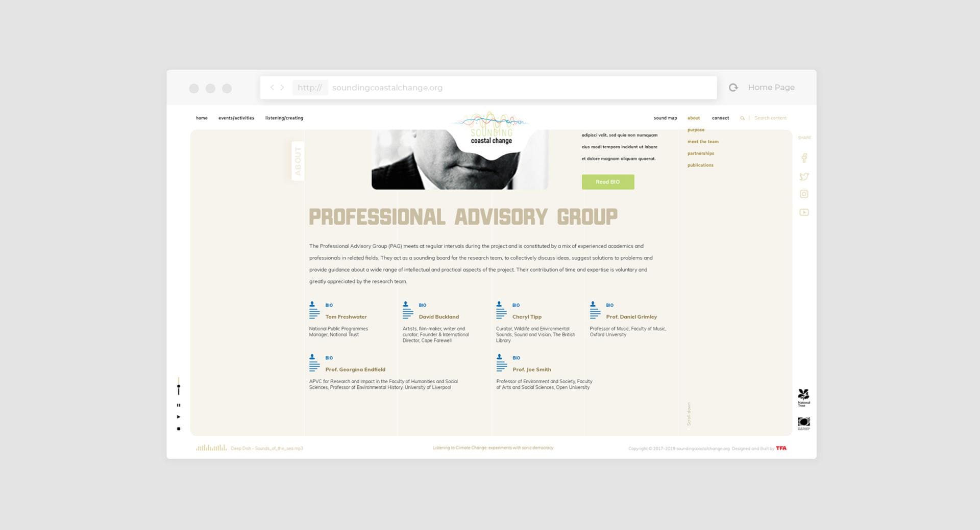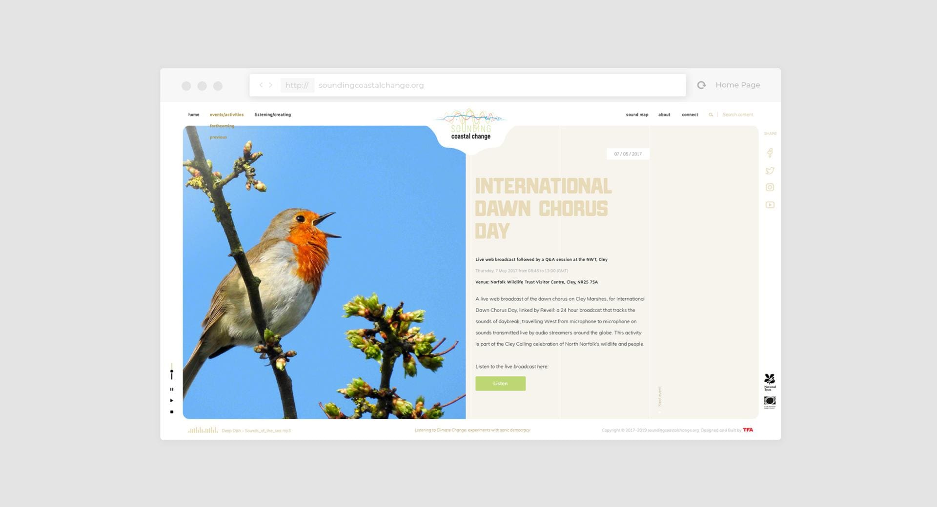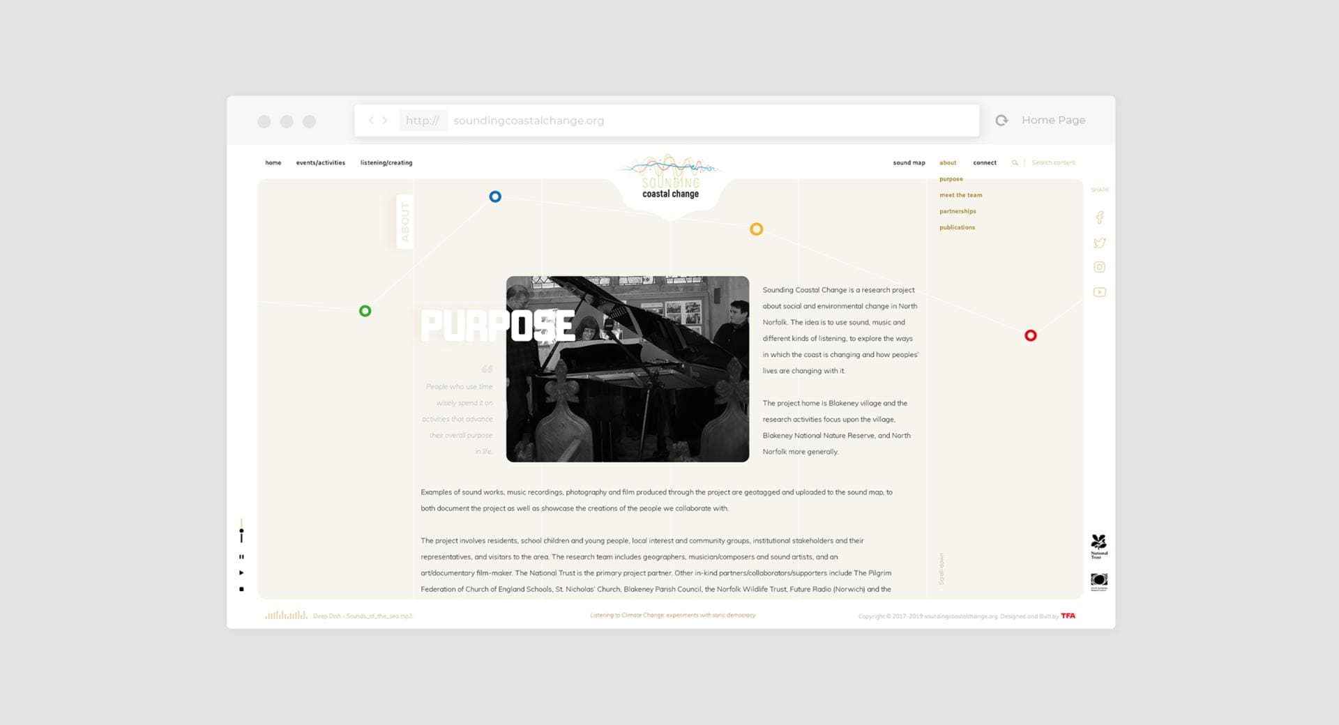Sounding Coastal Change is an "Arts and Climate Change" project, defined as "Social Process Art" using primarily sound to highlight and engage people around the issues of climate change.