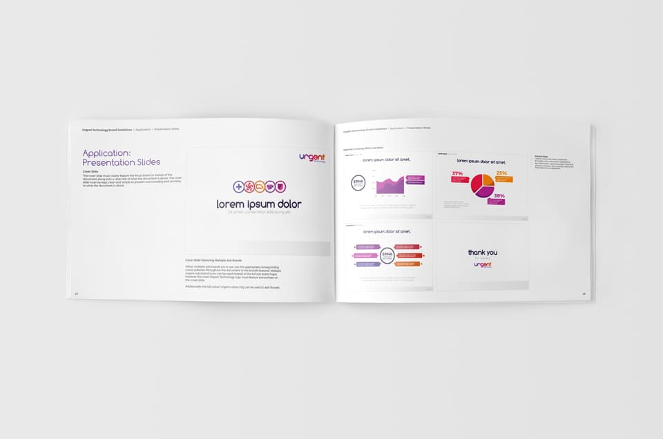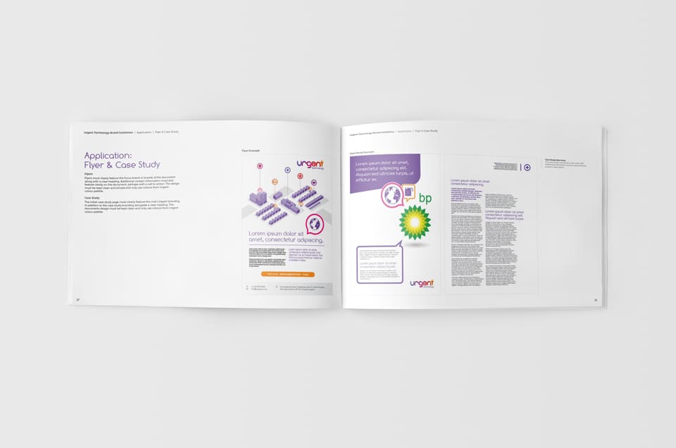 Once the overall company branding and logo had been agreed, a comprehensive set of Brand Guidelines and toolkit were created to act as an instruction manual for Urgent as to how the branding can and should be used.  This included templates for creating case studies and files for creating both stationary and brand collateral.