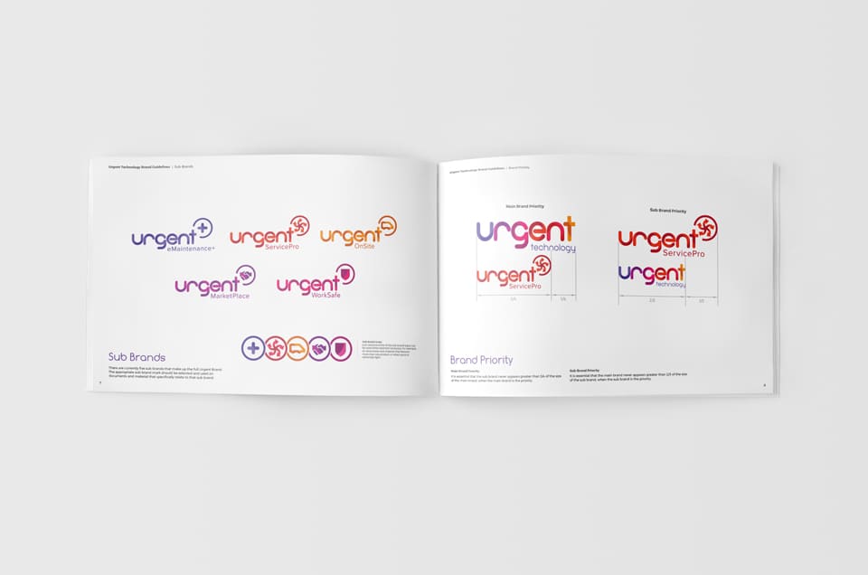 The team of graphic designers here at TFA, along with creating an over-arching brand logo design, also created a series of sub-brands to complement the new logo design. Using a series of contemporary colours, each sub-brand logo design had it’s own unique look and logo design that could be used separately, but still be instantly recognised as being part of the Urgent Technology family.