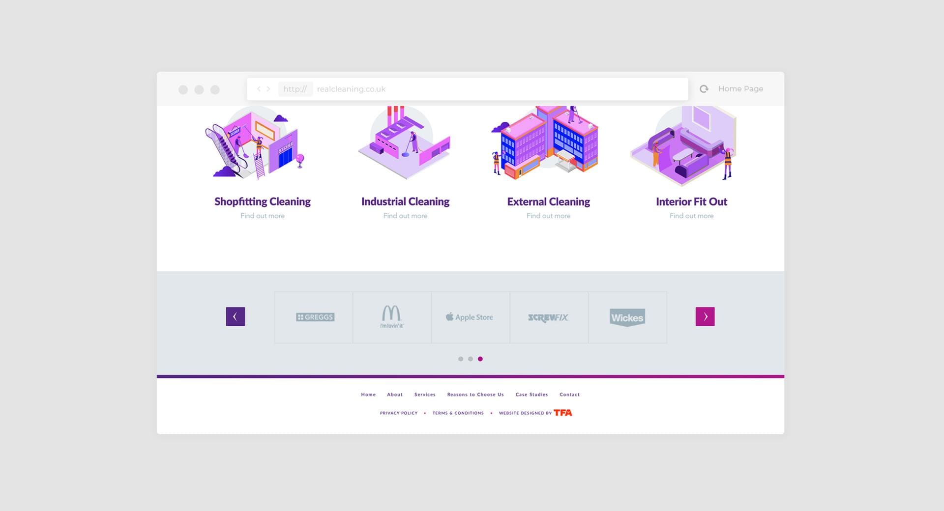 TFA helped Real Cleaning to create a new image and set of messages that stood out in the market and that they could hang their hat on; this was all applied to the design of their new cleaning services website.