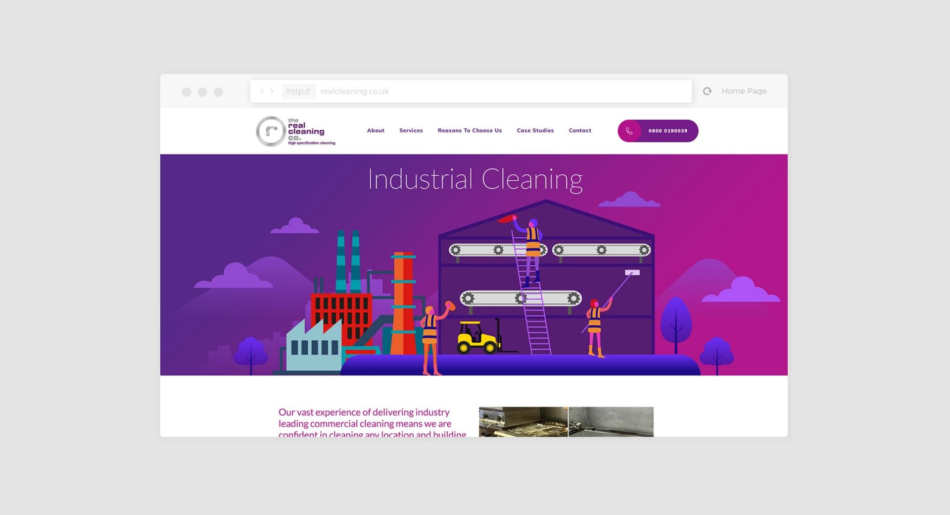 The messages and images we created and applied to the new website design are used throughout the business. We wanted to get across the personable yet highly professional nature of doing business with Real Cleaning and to set them above their competitors as a firm you could truly believe in for the best possible job on any project, whatever the challenges.